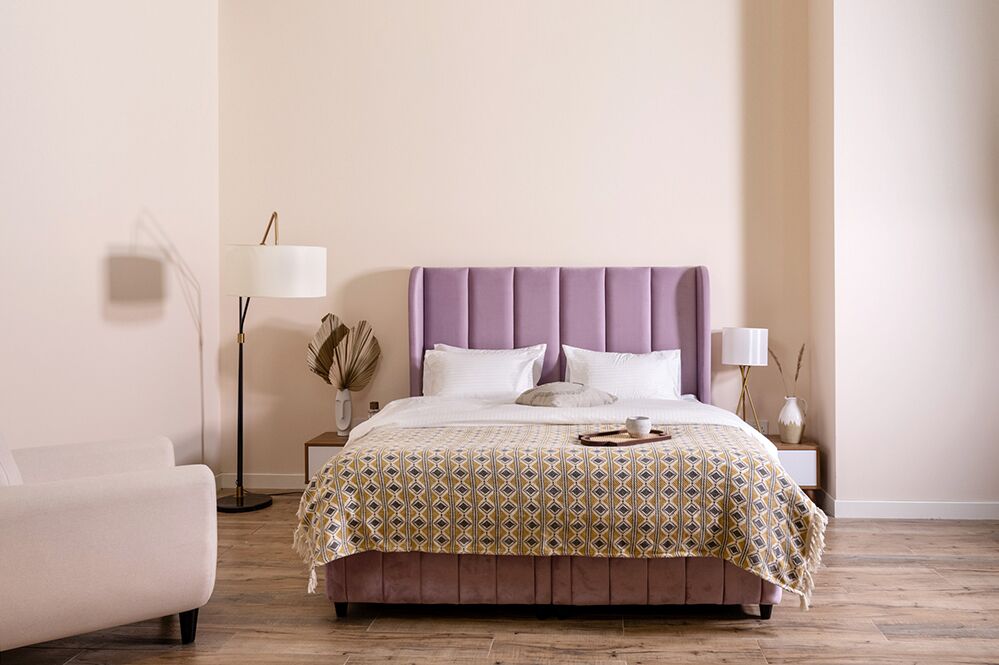 Presenting the Glory Bed, exquisitely upholstered with the finest fabric for a touch of opulence and comfort.