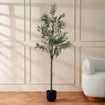 Bring a fresh, tropical vibe to any interior with the Grevia Olive Tree (180 cm) — a striking tall faux plant that adds lush greenery and natural appeal without any maintenance. With broad, vibrant green leaves and a realistic trunk silhouette, this decorative banana tree creates a bold visual impact in living rooms, offices, entryways, commercial spaces, or event settings.