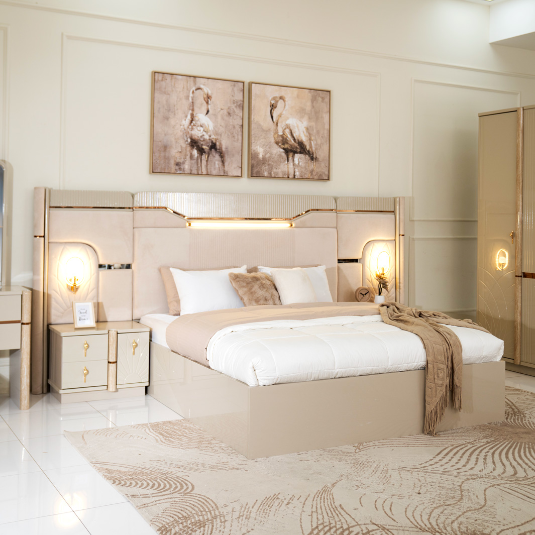 The Grizeman set blends elegance and utility with a spacious 200×180 cm bed. Designed for both style and practicality, it offers a complete solution to elevate your bedroom space.