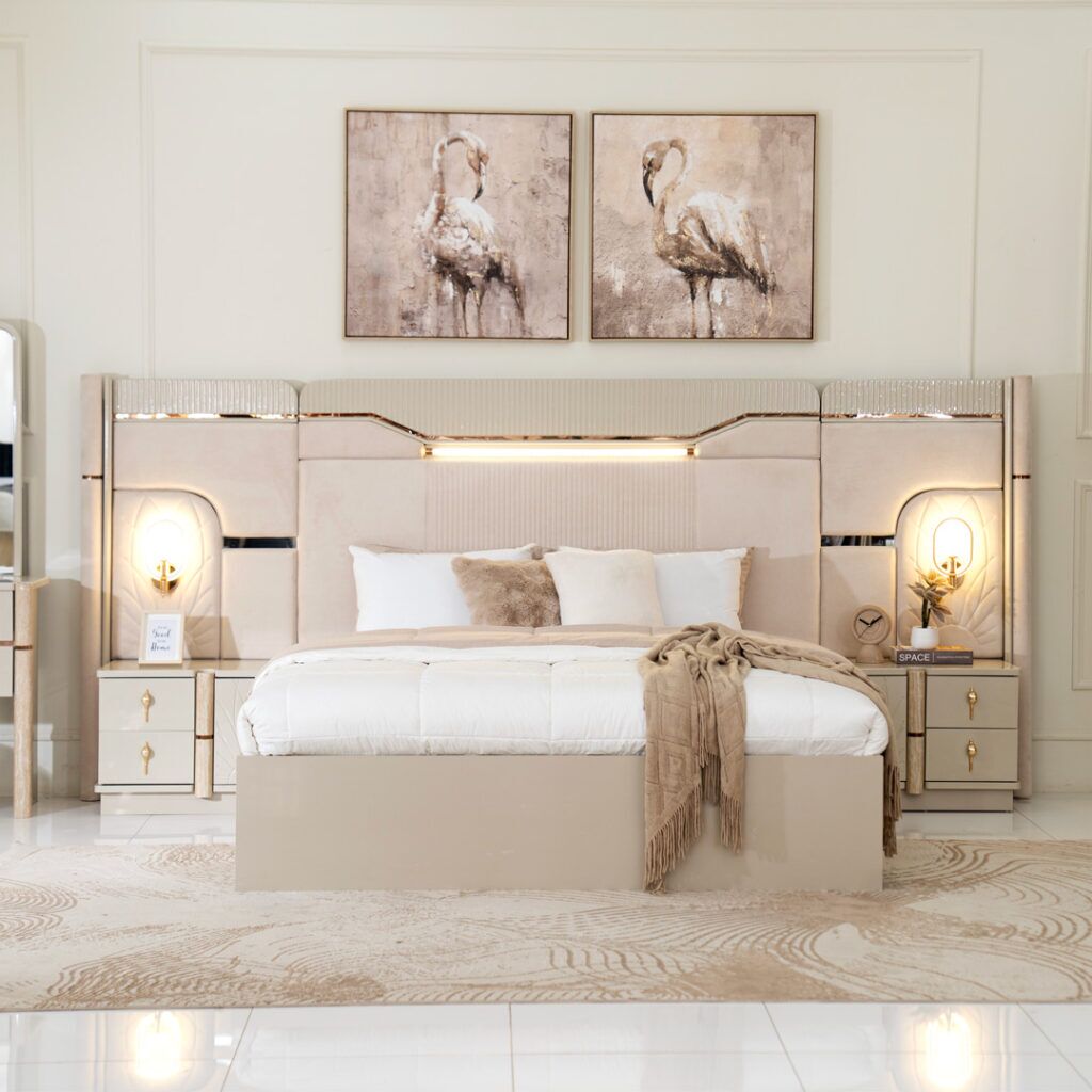 The Grizeman set blends elegance and utility with a spacious 200×180 cm bed. Designed for both style and practicality, it offers a complete solution to elevate your bedroom space.