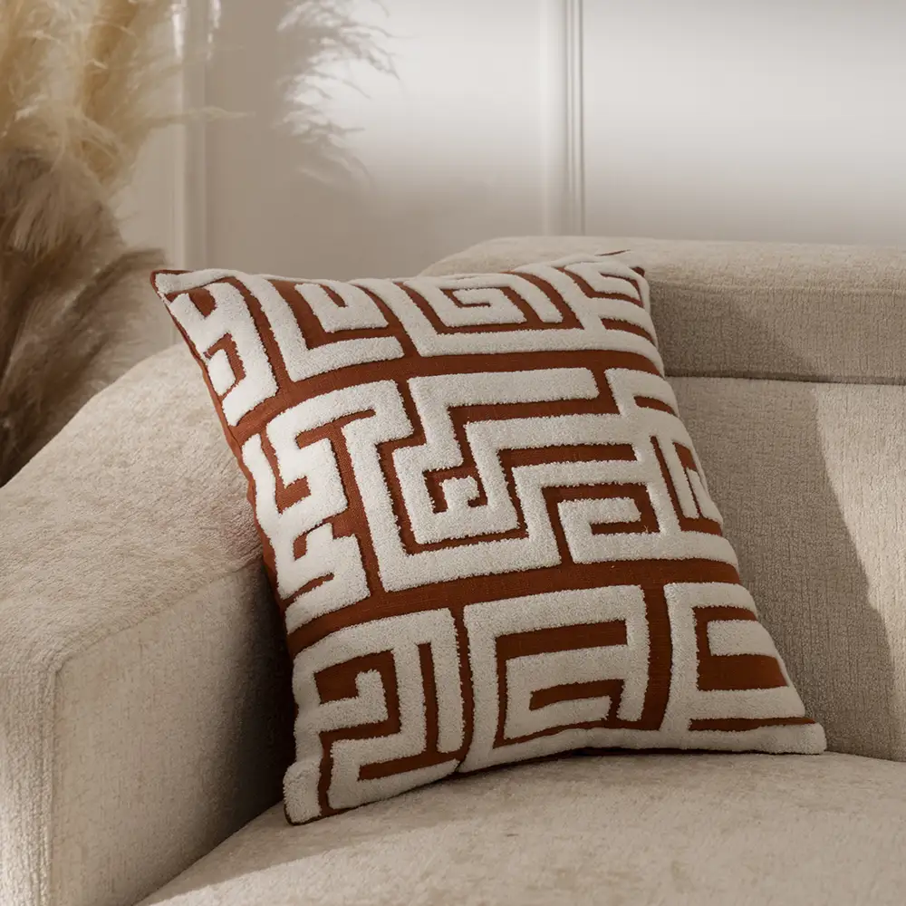 Ideal for adding a touch of elegance and relaxation to your living room, bedroom, or any space, the Heston embroidered geo cushion is your go-to for a stylish and comfortable upgrade.