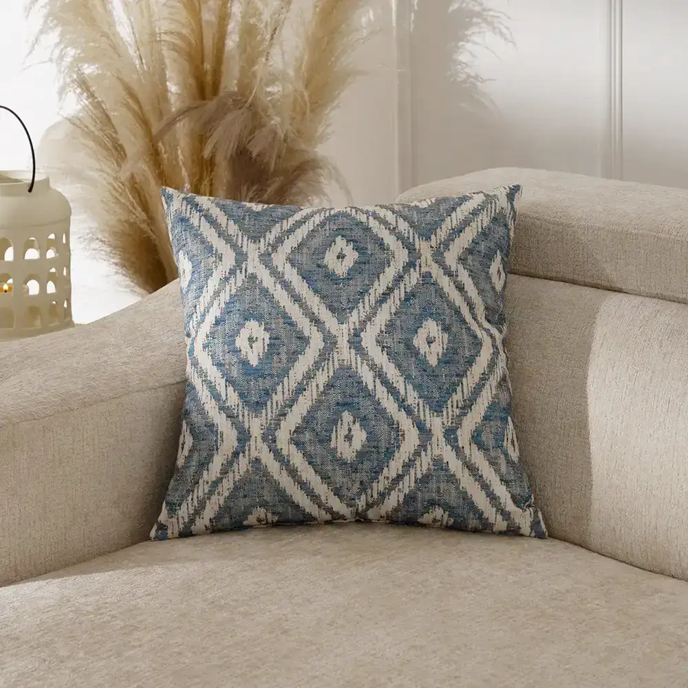 Ideal for adding a touch of elegance and relaxation to your living room, bedroom, or any space, the Heston ikat printed cushion is your go-to for a stylish and comfortable upgrade.