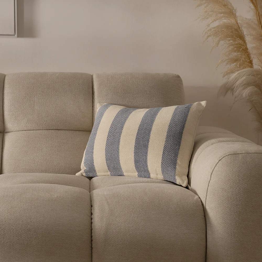 Ideal for adding a touch of elegance and relaxation to your living room, bedroom, or any space, the Heston striped, blue cushion is your go-to for a stylish and comfortable upgrade.
