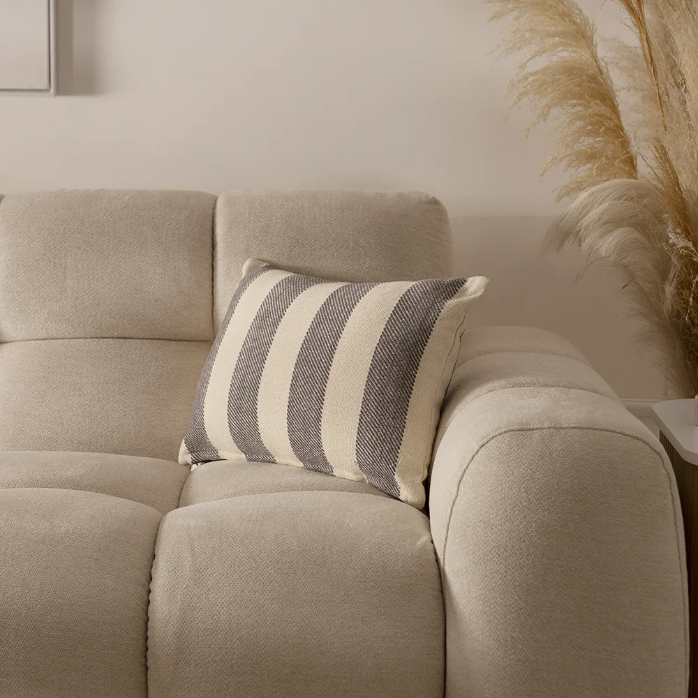 Ideal for adding a touch of elegance and relaxation to your living room, bedroom, or any space, the Heston striped, charcoal cushion is your go-to for a stylish and comfortable upgrade.