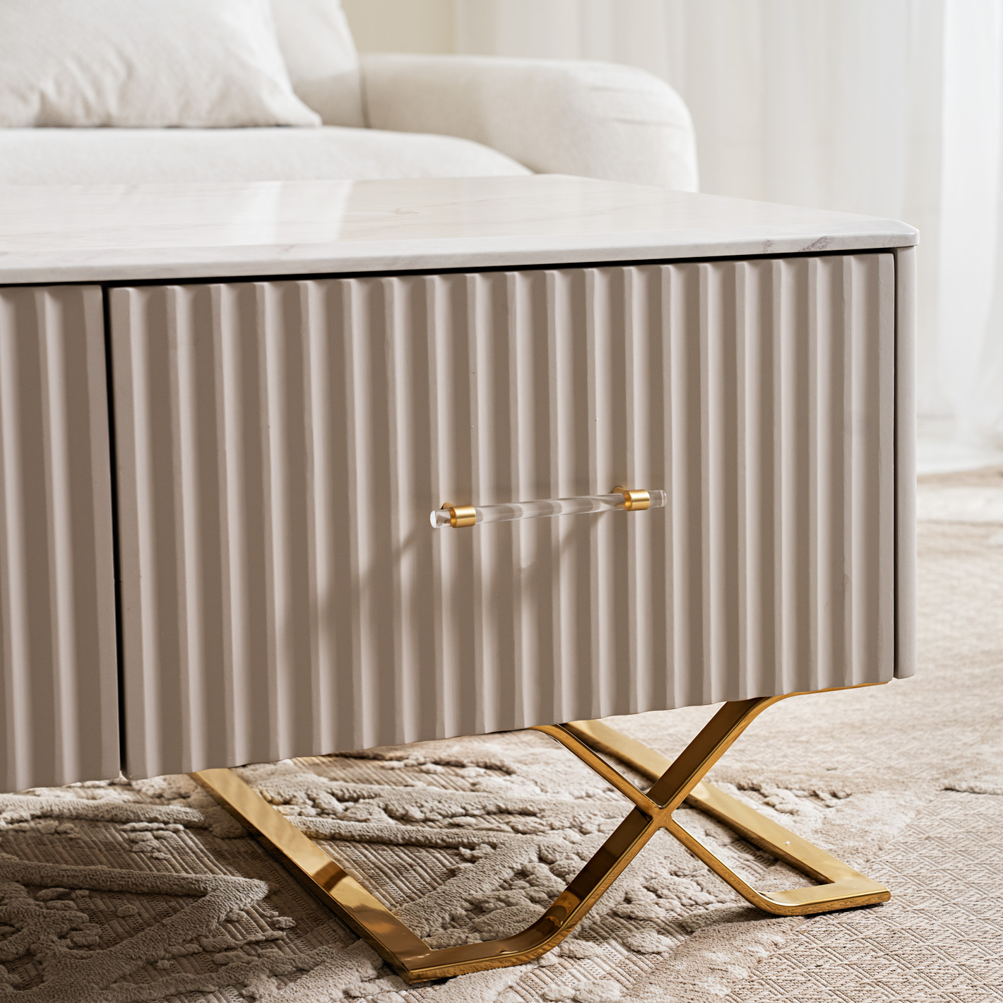 Add a touch of elegance and modern flair to your living space with this stunning Marble Top Coffee Table.