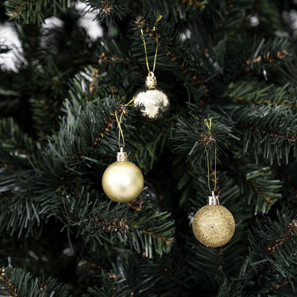 Many plastic baubles are smooth and shiny, reflecting light beautifully. They often come in festive colors like red, gold, silver, and red, with a high gloss to give them a polished, elegant look.