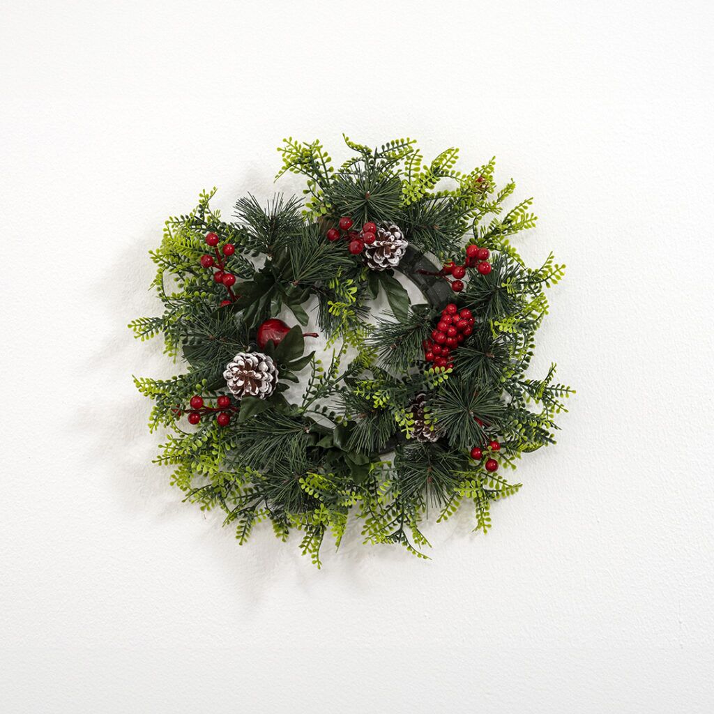 Christmas wreath green is a rich, deep shade that evokes the natural, lush color of evergreen trees. This green is a blend of forest green and dark olive, with undertones of earthy brown to make it appear natural and grounded.