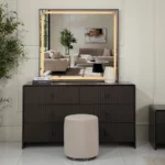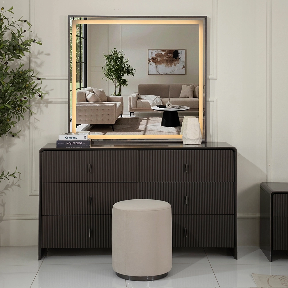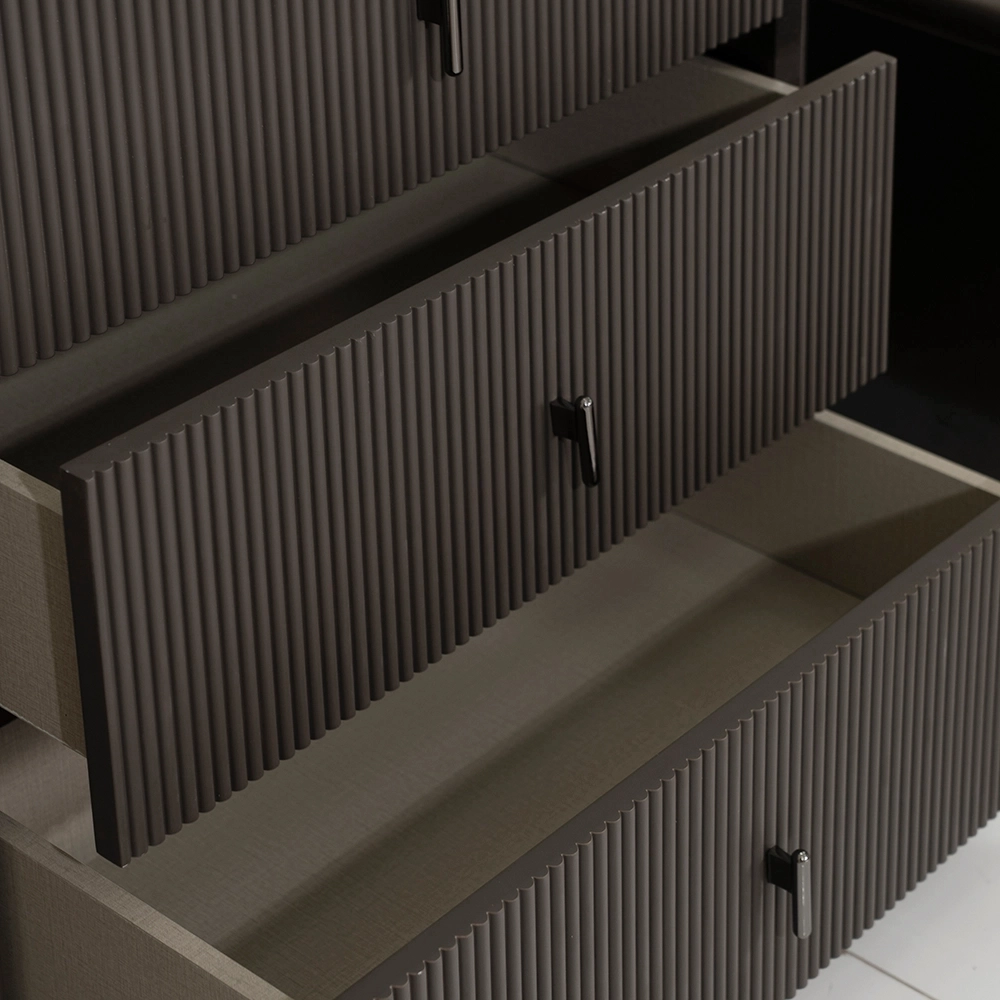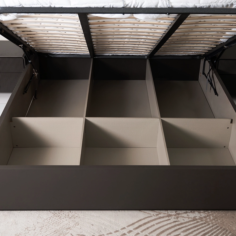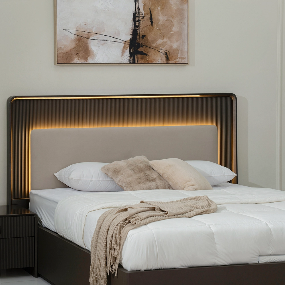 Elevate your bedroom with this contemporary luxury bedroom set designed for both style and functionality. Finished in an elegant dark tone with warm accents, this set creates a calm, sophisticated ambiance while offering smart solutions for modern living.