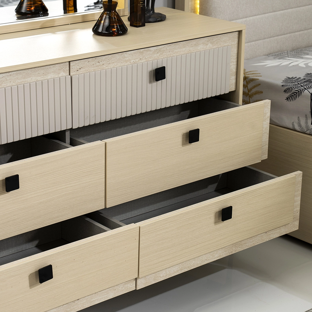 | Set Includes | 1 Bed, 2 Nightstand, 1 Dresser with mirror with Stool & 1 Wardrobe |