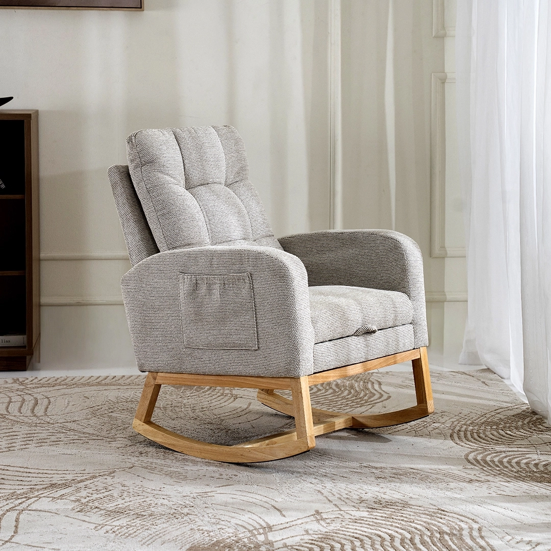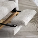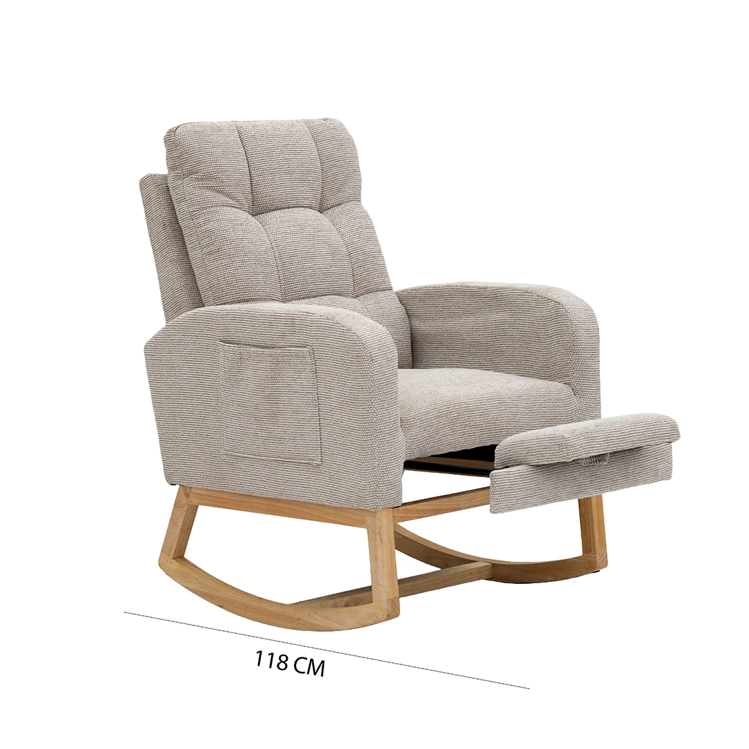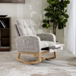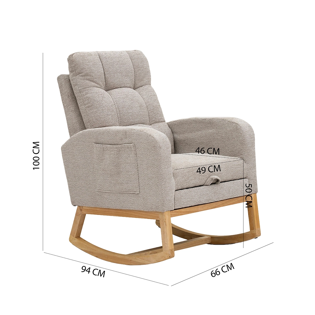 The Kamari Rocking Chair is a stylish and comfortable seating piece, designed with a unique blend of modern aesthetics and classic functionality. It features a sturdy wooden frame that provides a smooth rocking motion, offering relaxation and stability.
