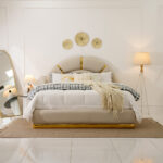 The Kevin upholstered bed offers a perfect blend of style and comfort, with a plush padded frame and a sleek fabric finish for a refined bedroom look.