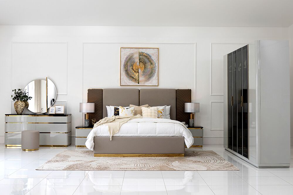 | Set Includes | 200*180 Bed+ Dresser + 2 side Tables+1 wardrobe + 1 Dresser Stool and 1 mattress |