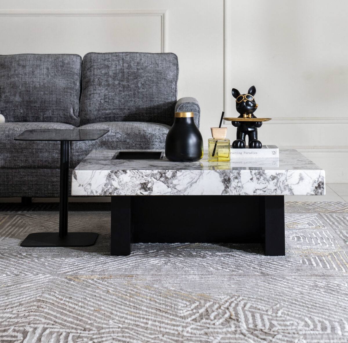 An elegant 2-piece set featuring a main coffee table and a matching side table, perfect for flexible living space arrangements.