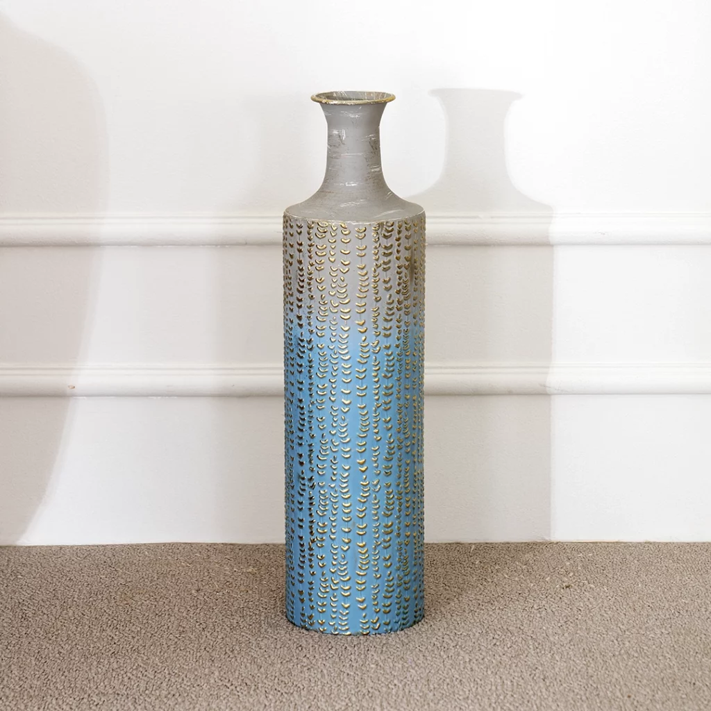 Laive Metal Texture Vase features a sleek, minimalist design with a modern finish, perfect for showcasing plants or adding a stylish accent to any space.