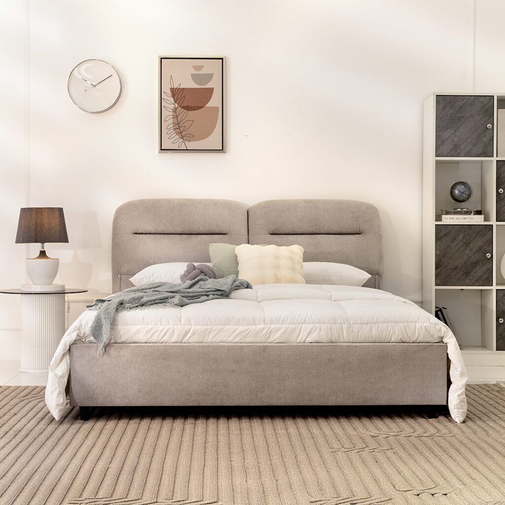 The lena bed blends comfort and elegance, featuring a soft upholstered frame and a refined design that enhances any bedroom with a touch of sophistication.