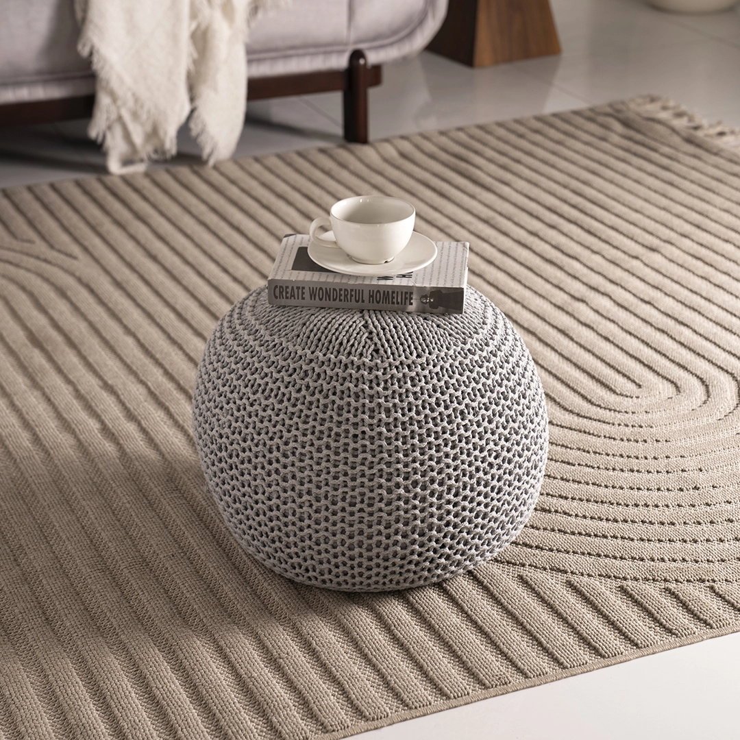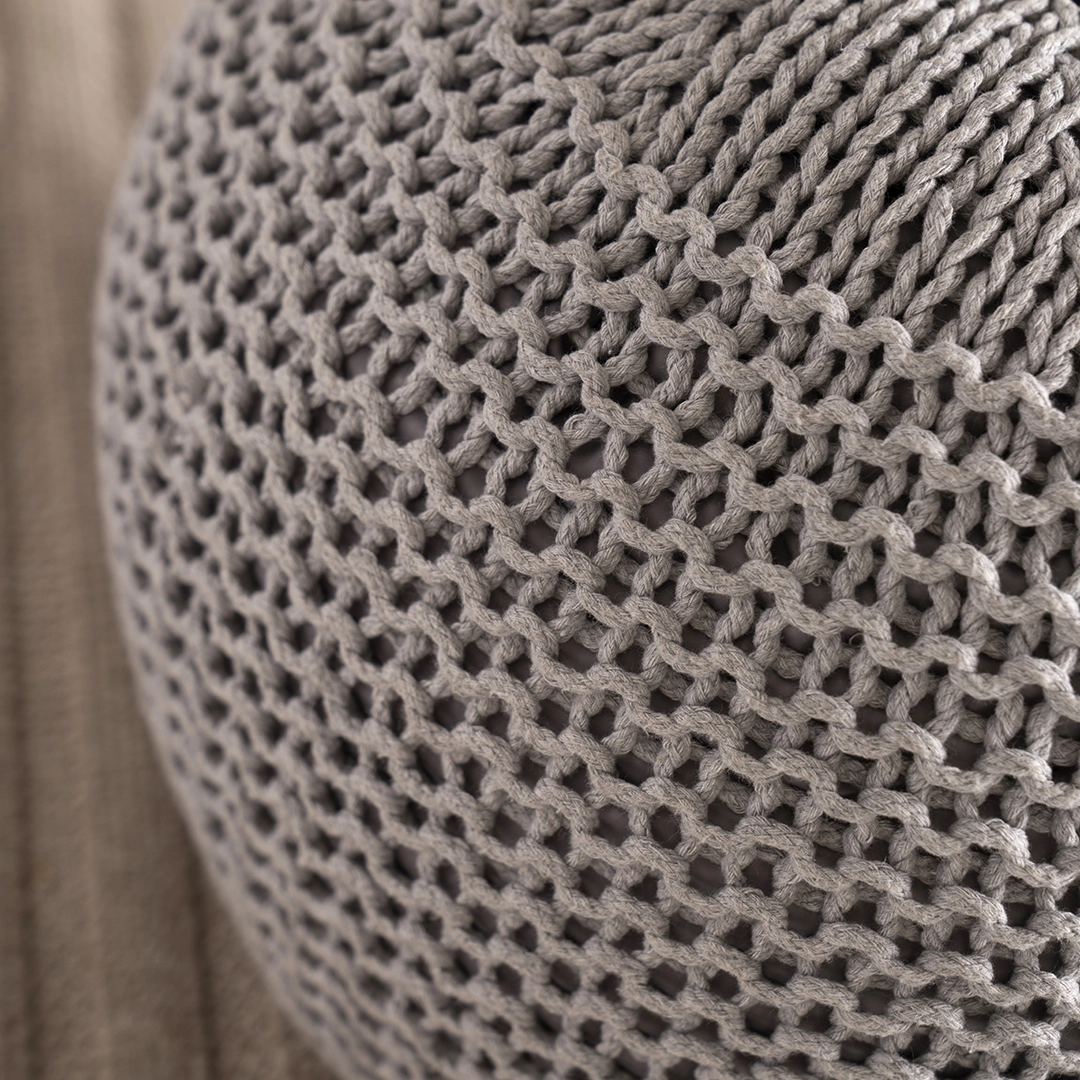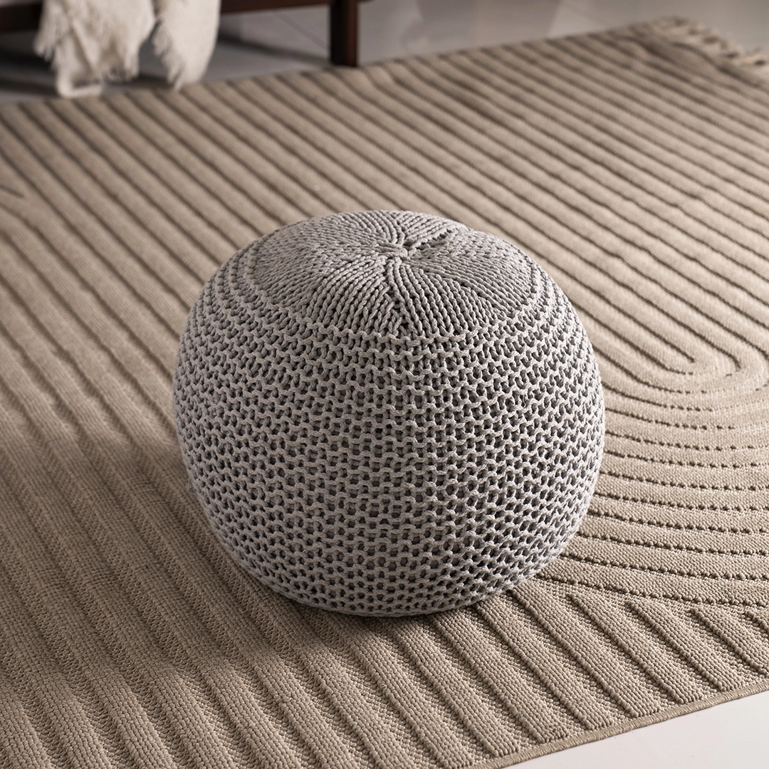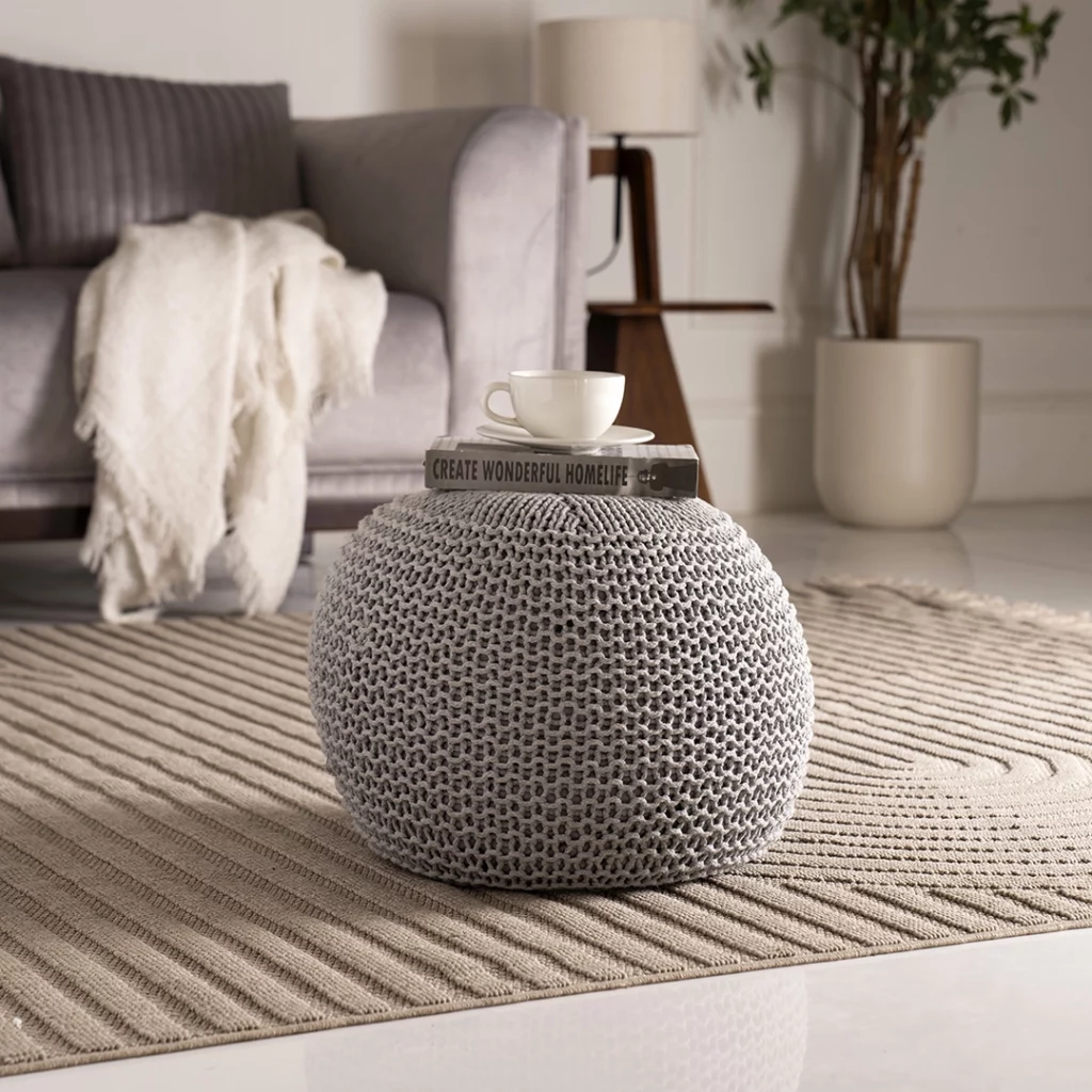 A stylish and versatile accent piece featuring a soft knitted texture. Perfect as extra seating, a footrest, or a decorative touch to complement any living space.