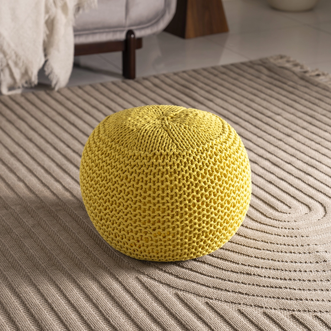 A stylish and versatile accent piece featuring a soft knitted texture. Perfect as extra seating, a footrest, or a decorative touch to complement any living space.