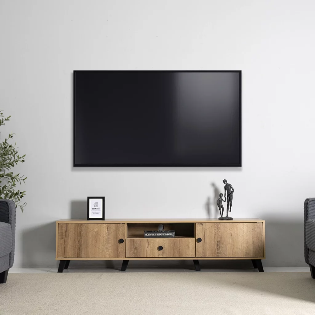 A sleek and modern tv unit offering ample storage, designed to complement contemporary living spaces with a perfect blend of style and functionality.