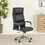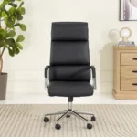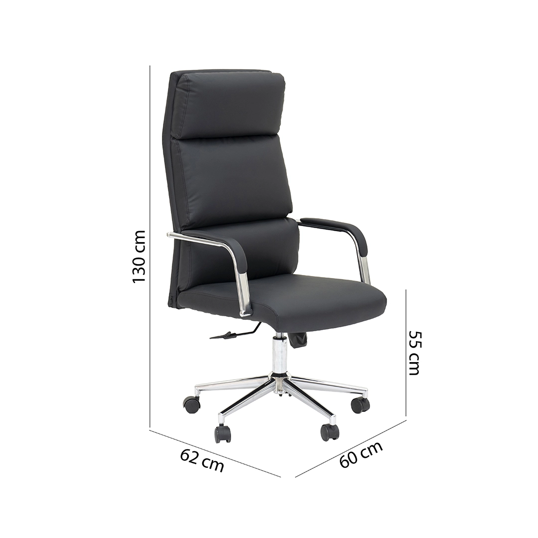 The Liya High Back Office Chair in black offers a sleek, modern design with a comfortable padded seat and supportive backrest—ideal for office reception areas, meeting rooms, or home workspaces.