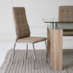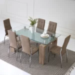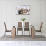 The glass finish on the tabletop adds a reflective quality that enhances the light in the room, making the space feel more open and airier. The transparency of the glass also contributes to the modern aesthetic.