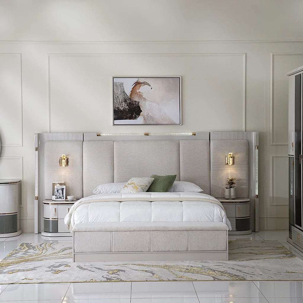 | Set Includes | 1 Bed+2 Nightstand+1 Dresser+1 Stool+1 Wardrobe+ Bench |
