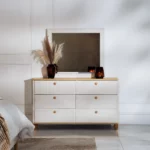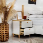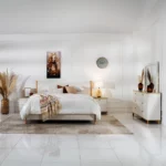 A fabric with wood bedroom set combines two materials—soft, cozy fabrics with the warmth and durability of wood—creating a balanced and stylish atmosphere.