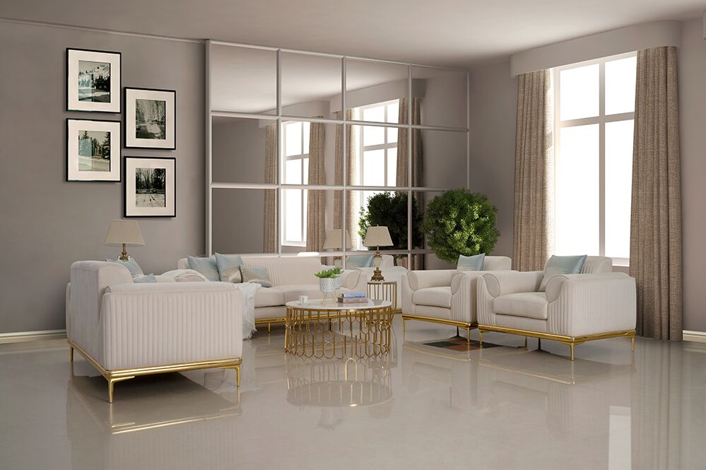 The Macie Sofa set features a spacious seven-seater configuration, providing ample seating for large gatherings or cozy nights in with the family. The high-quality upholstery, available in a range of exquisite fabrics and colors, adds a touch of sophistication to any room.