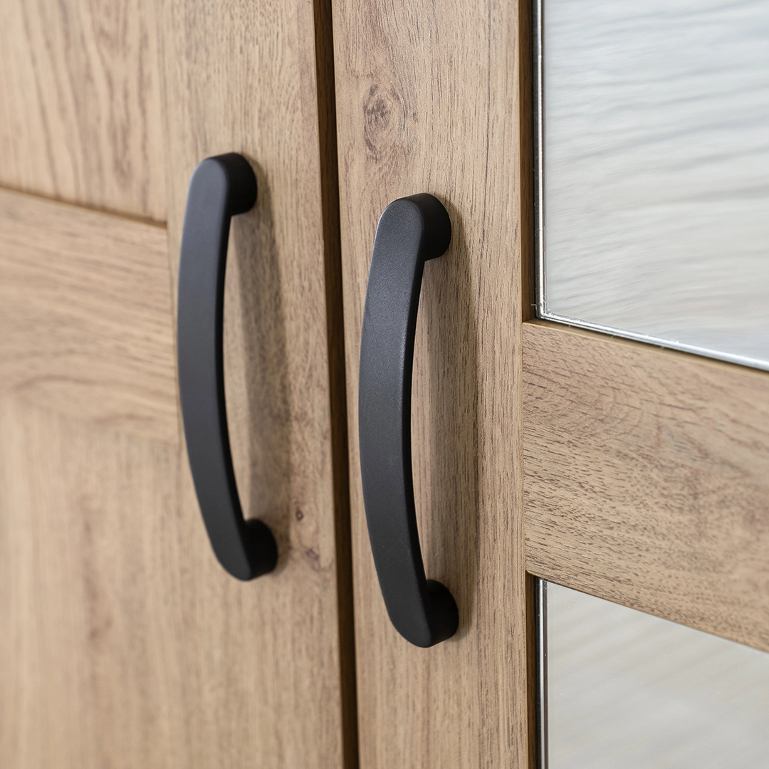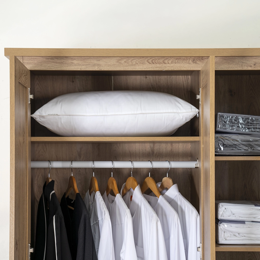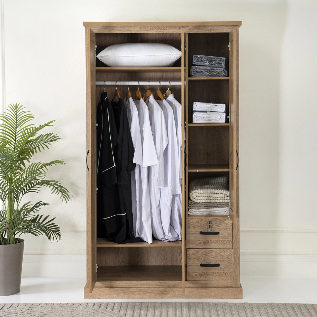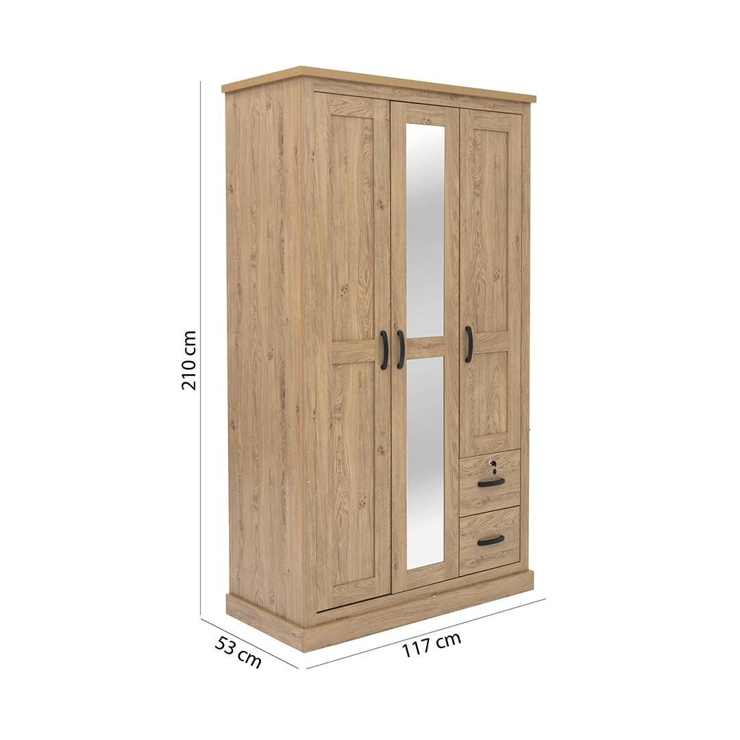 The Majestic is a 3-door wardrobe finished in an Oak color — shade that blends easily with modern or contemporary bedroom décor. It offers a practical solution for organizing clothing while saving space.