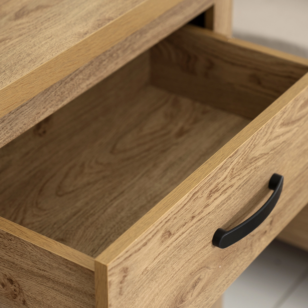 Made from melamine-laminated MDF with a smooth melamine finish, each piece exudes durability and sophistication.