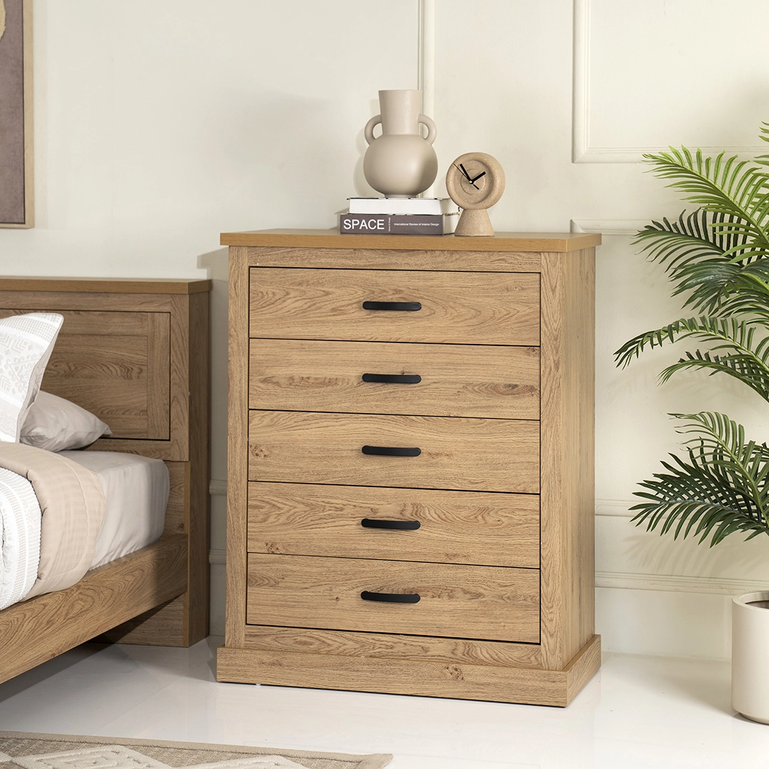 | Set Includes | 1 Bed, 2 Nightstand, 1 Dresser,1 Chest of Drawer & 1 Wardrobe |