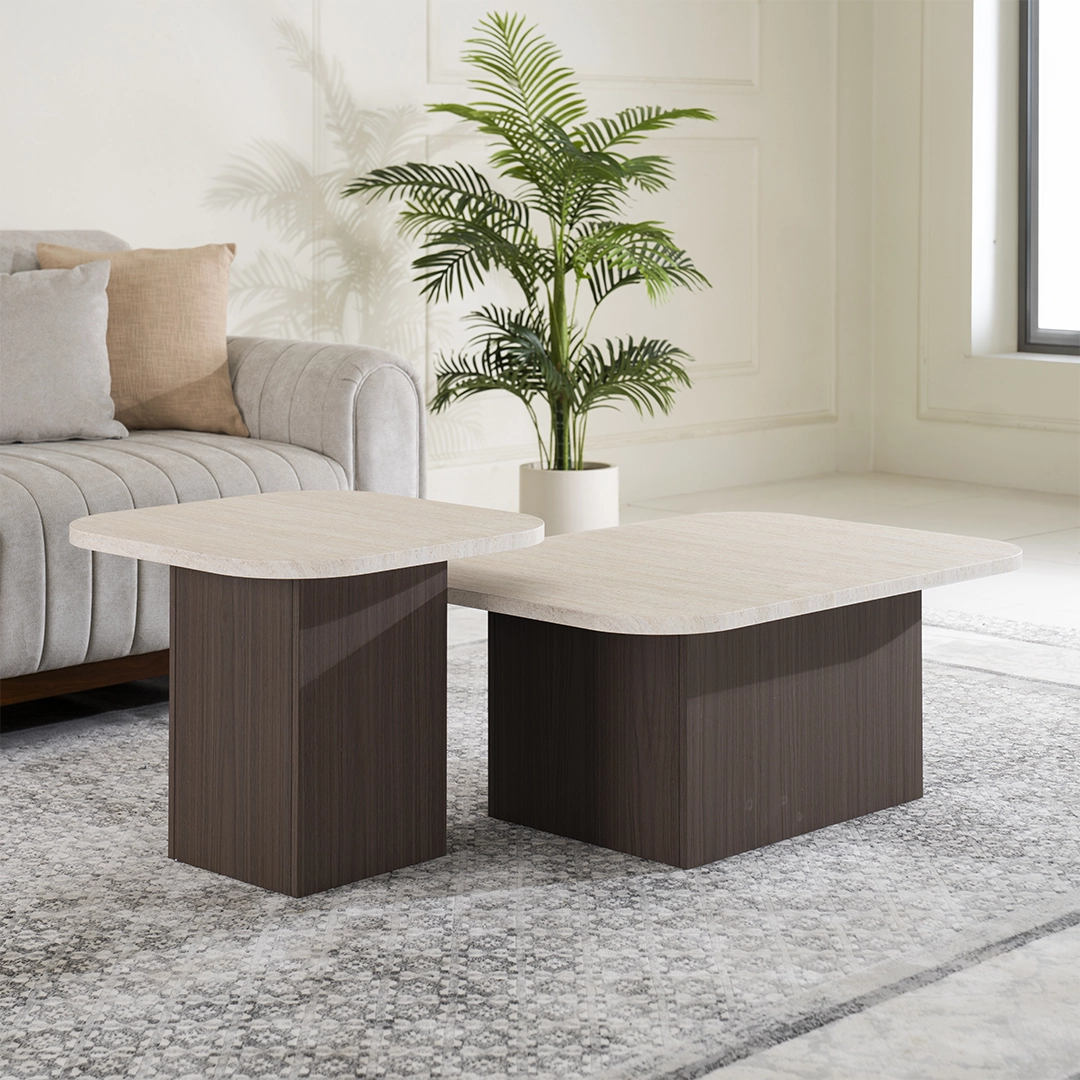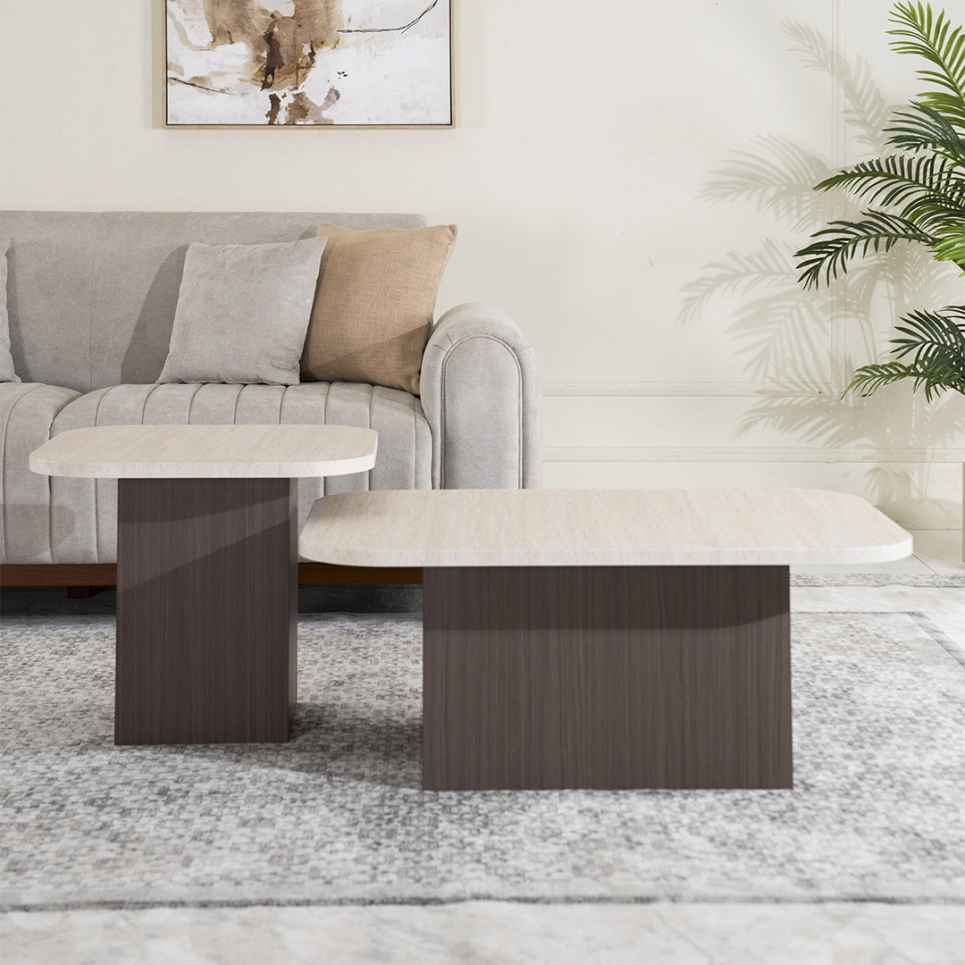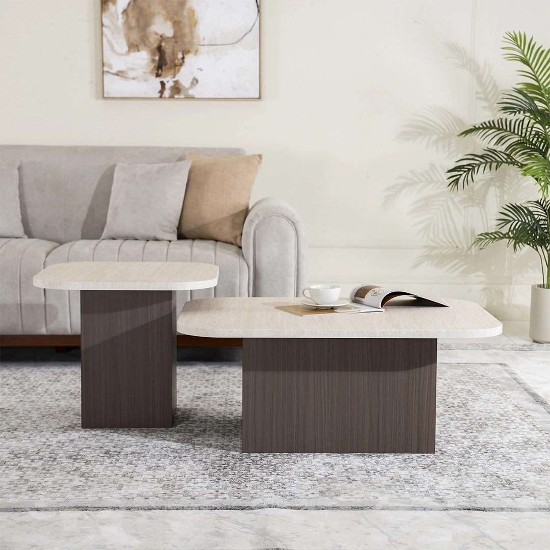 Elegant 2-piece set offers a main coffee table plus a companion side or nested table — ideal for flexible living-space arrangements.