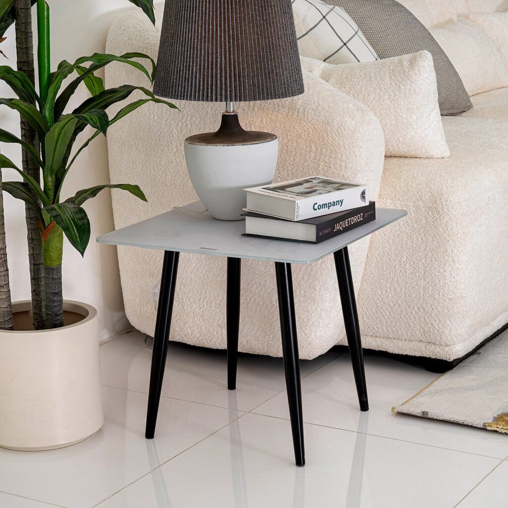 The tempered glass tabletop of the Milan End Table provides a contemporary and transparent aesthetic, while the sturdy metal frame ensures and stability.