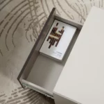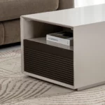 Beautiful two-tone design: a crisp white tabletop paired with a polished gold-metal base/legs, giving a luxurious, modern aesthetic.