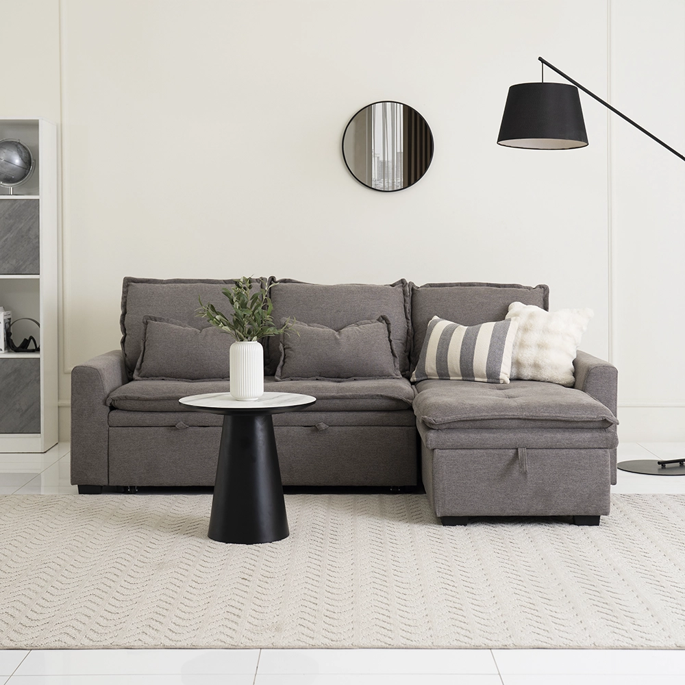 This Corner sofa bed with storage combines smart functionality and modern style, this sofa bed with storage offers modern style and versatility, converting easily into a bed while providing built-in storage to keep your space organized.