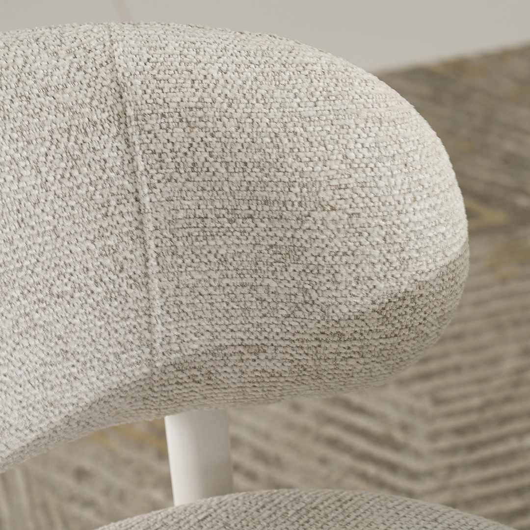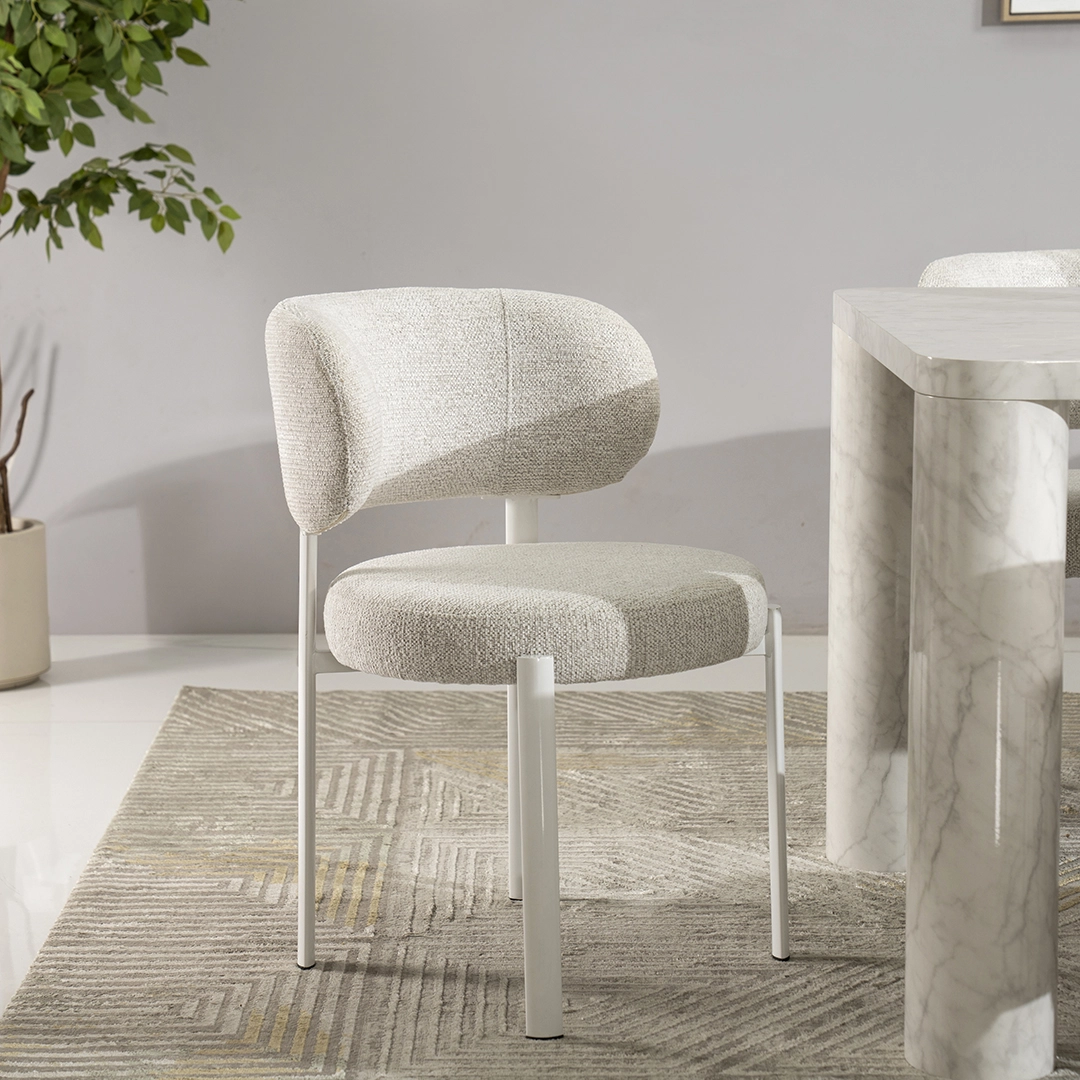 Finished with a sleek Matte finish, the set is highlighted in a timeless White & Light Grey color palette, adding a sense of brightness and refinement to your home. The spacious table provides ample room for meals and gatherings, while the upholstered fabric chairs ensure comfort and style for your guests.