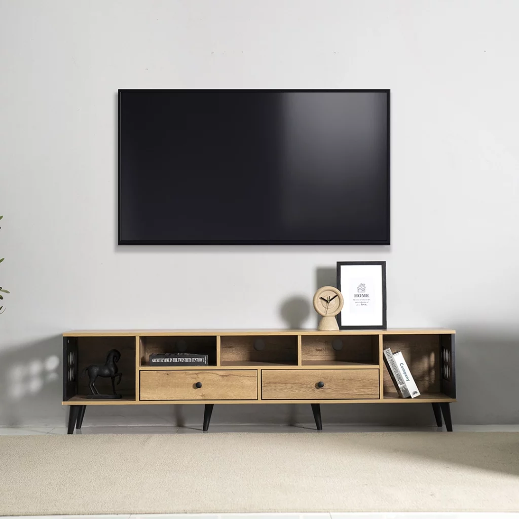 A sleek and modern tv unit offering ample storage, designed to complement contemporary living spaces with a perfect blend of style and functionality.