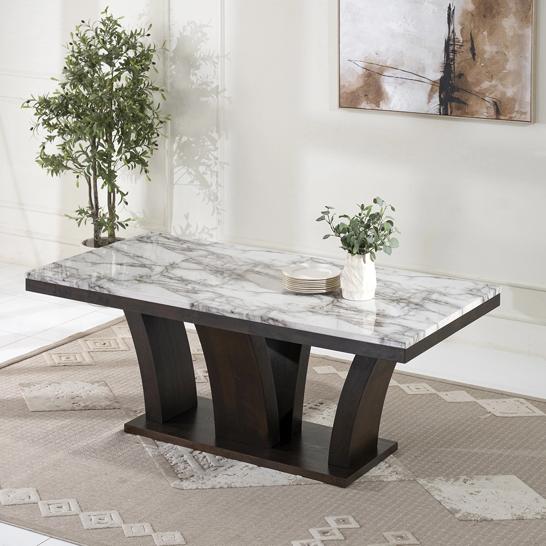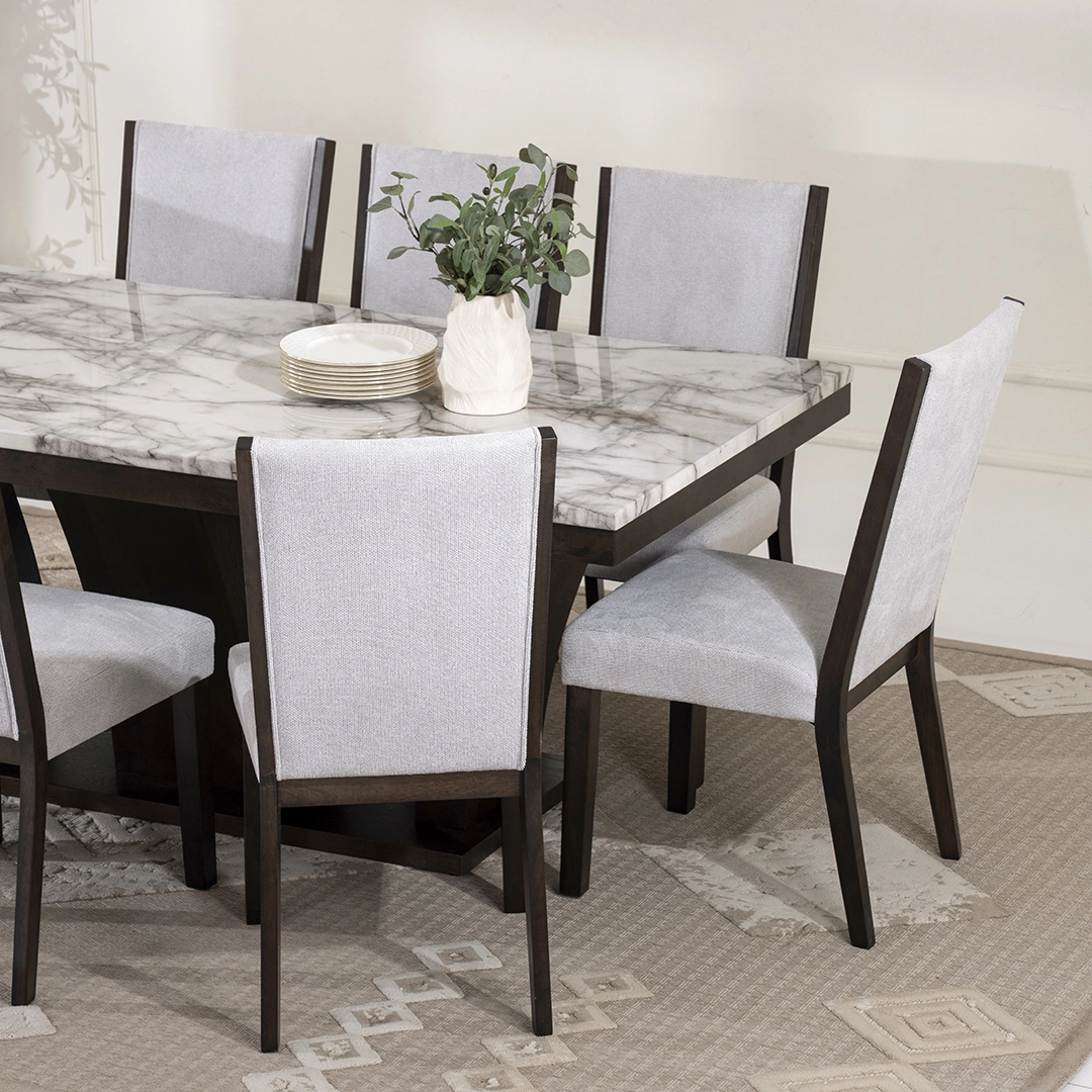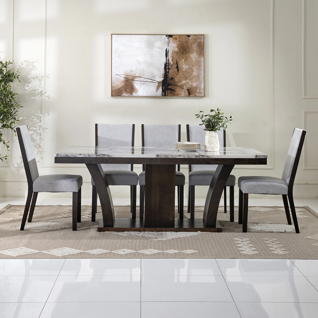 The Navona dining set 1+8 combines style and functionality, offering comfortable seating for six. With its elegant design and durable build, it makes a perfect centerpiece for everyday meals and special gatherings alike.