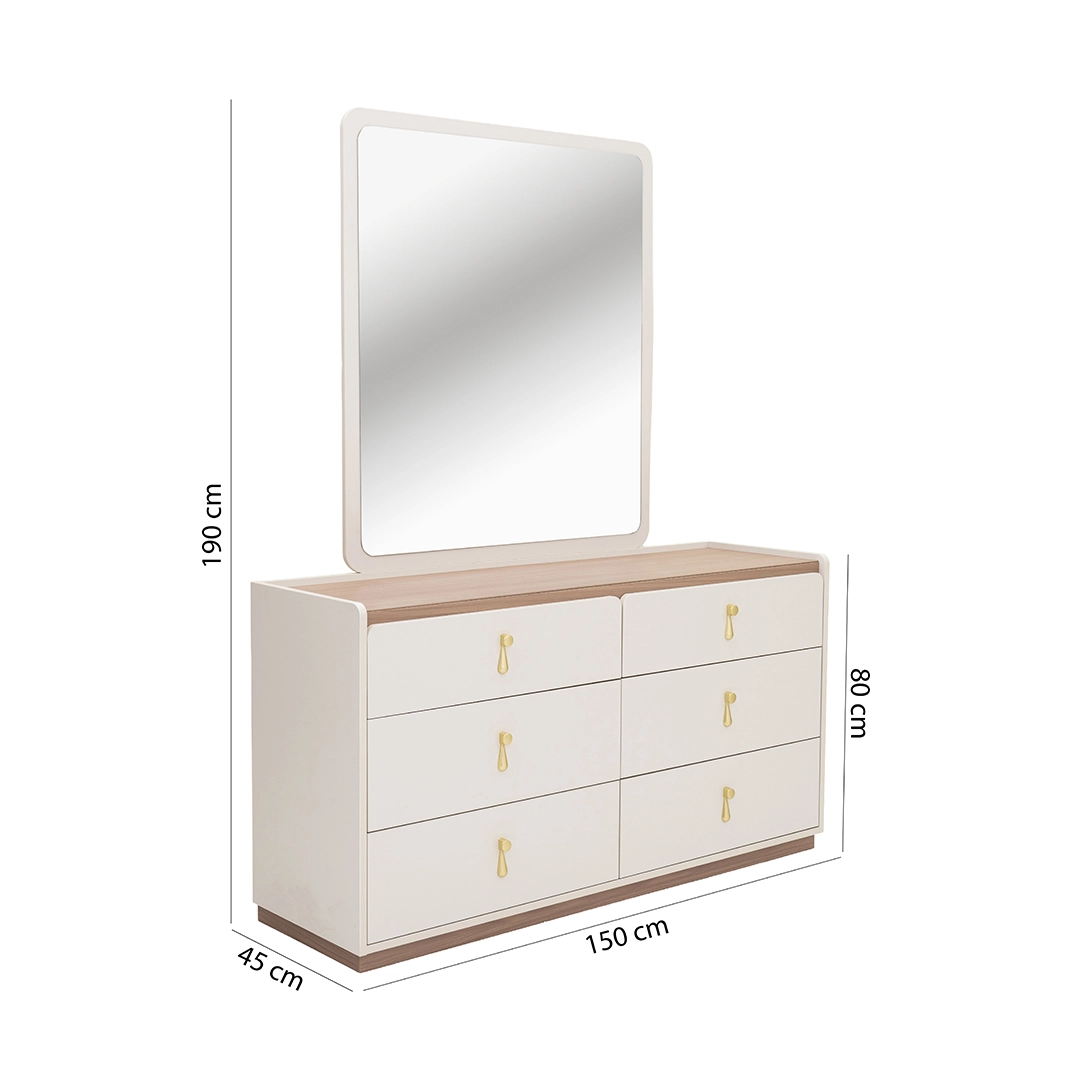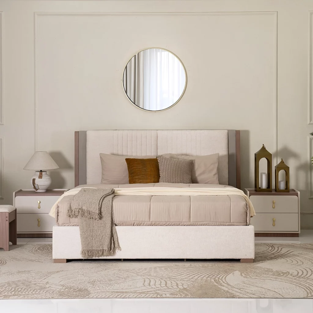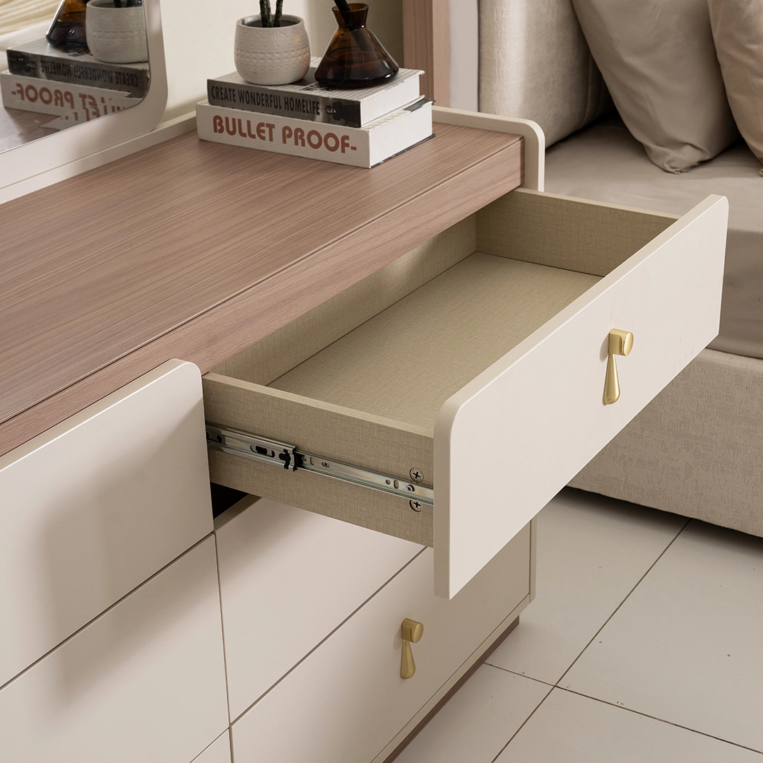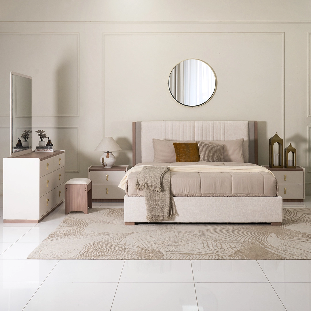| Set Includes | 1 Bed+2 Side Table+1 Dresser with Mirror +1 Stool + 1 Wardrobe |