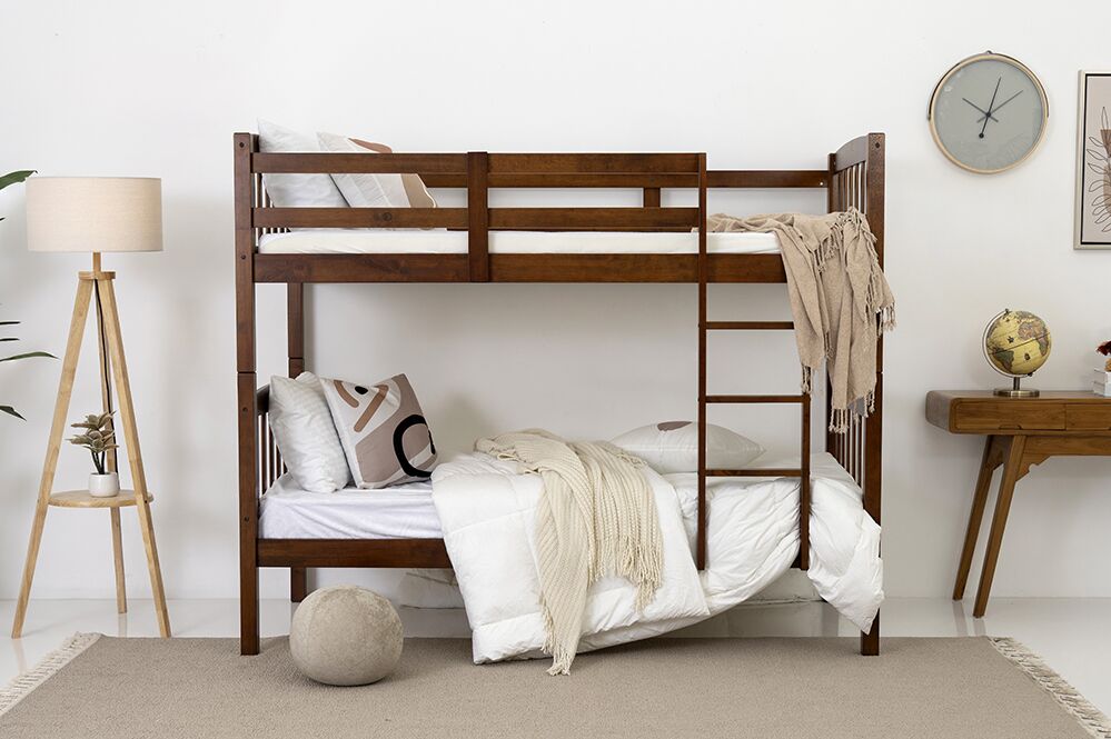 Perfect for shared bedrooms or accommodating guests, the bunk bed efficiently utilizes vertical space, offering comfortable sleeping arrangements for two children without taking up excessive floor space.