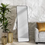 The Nexa Metal Floor Standing Mirror in black features a sleek and modern design, with dimensions of Perfect for any contemporary space, this full-length mirror offers both style and functionality, ideal for use in bedrooms, entryways, or dressing areas.