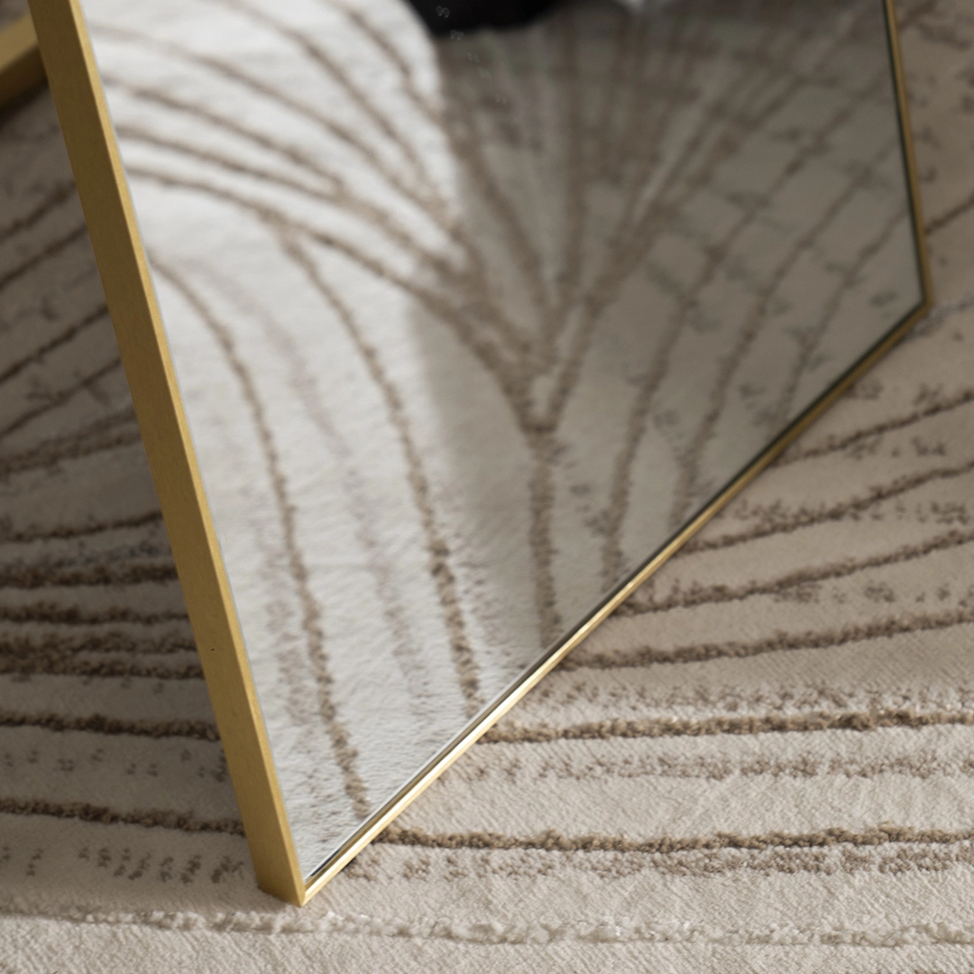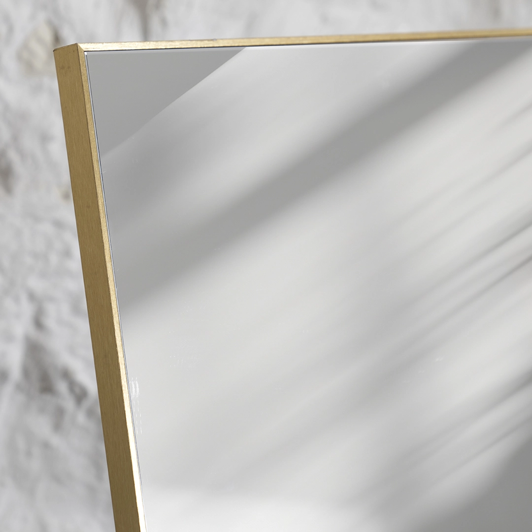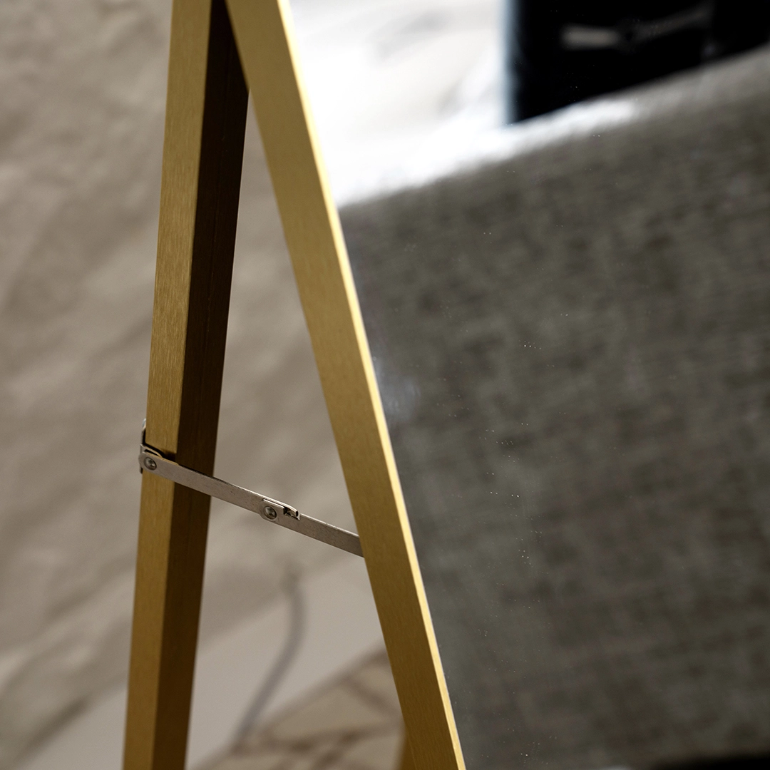 The Nexa Wood Standing Mirror in gold features a sleek and modern design, with dimensions of Perfect for any contemporary space, this full-length mirror offers both style and functionality, ideal for use in bedrooms, entryways, or dressing areas.