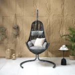 The Niran swinging chair in sand brings serene comfort and timeless charm—crafted for effortless relaxation with a soft, soothing sway.