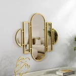 Add a touch of modern elegance with the novo metal wall mirror in gold, featuring multiple organically shaped mirrors seamlessly arranged into a single striking piece. The artistic design and warm metallic finish create a sophisticated focal point while enhancing depth and light in any space