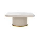 The Olivia Coffee Table is a contemporary, elegant piece of furniture that serves as both a functional centerpiece and a stylish accent in living rooms, lounges, or seating areas.