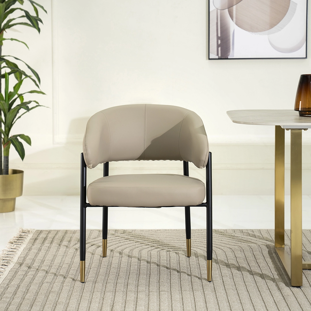 A versatile and elegant dining chair featuring a supportive backrest and plush cushioning, designed for lasting comfort and to effortlessly complement any dining space.