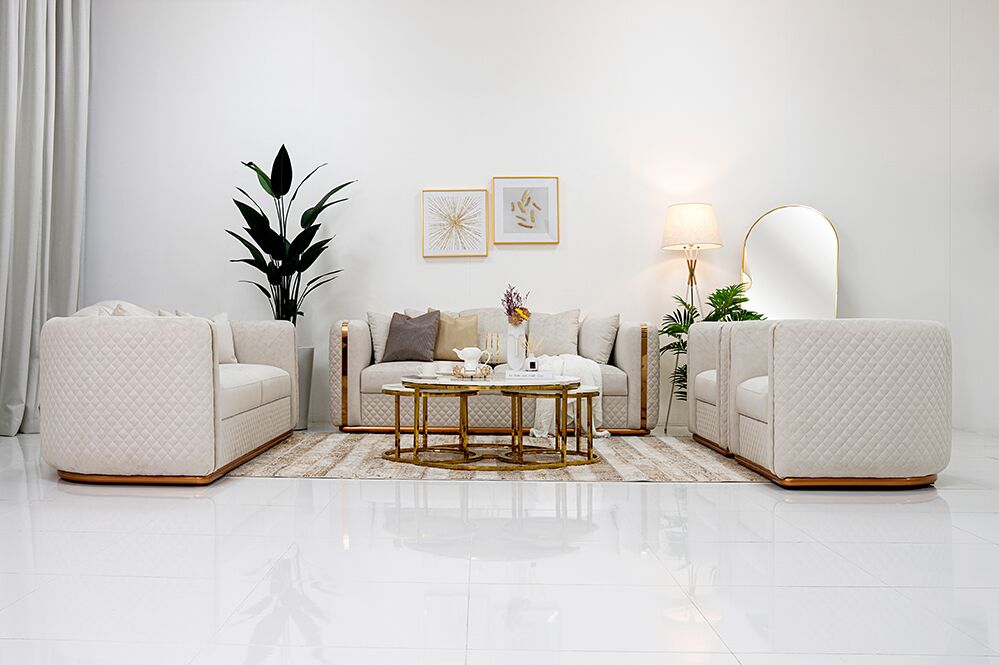 Introducing the Omar 8-Seater Sofa Set Luxurious comfort meets versatile seating in this stylish ensemble. Adorned with premium fabric upholstery, it’s the perfect blend of elegance and functionality for your living space.
