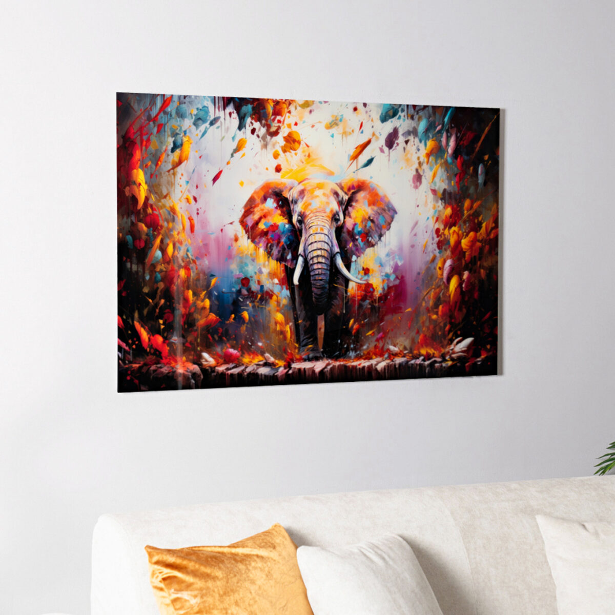 Featuring a striking elephant motif, this artwork captures the grace and strength of one of nature’s most iconic animals. The detailed imagery and thoughtful composition make it a captivating focal point that complements a wide range of décor styles, from minimalistic to eclectic.