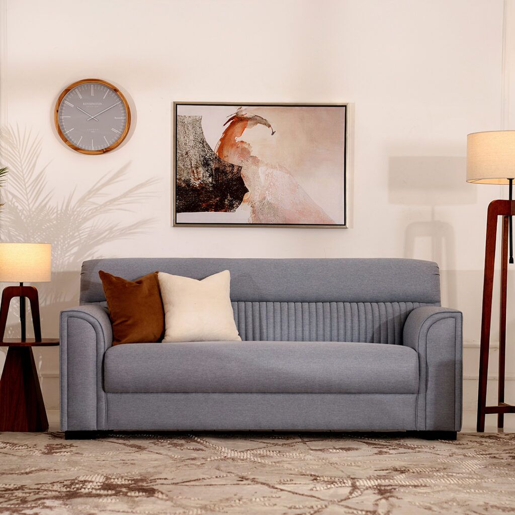 Opulent three-seater sofa a stylish and comfortable 3-seater upholstered sofa, designed with plush cushioning for a cozy and elegant touch to any space.