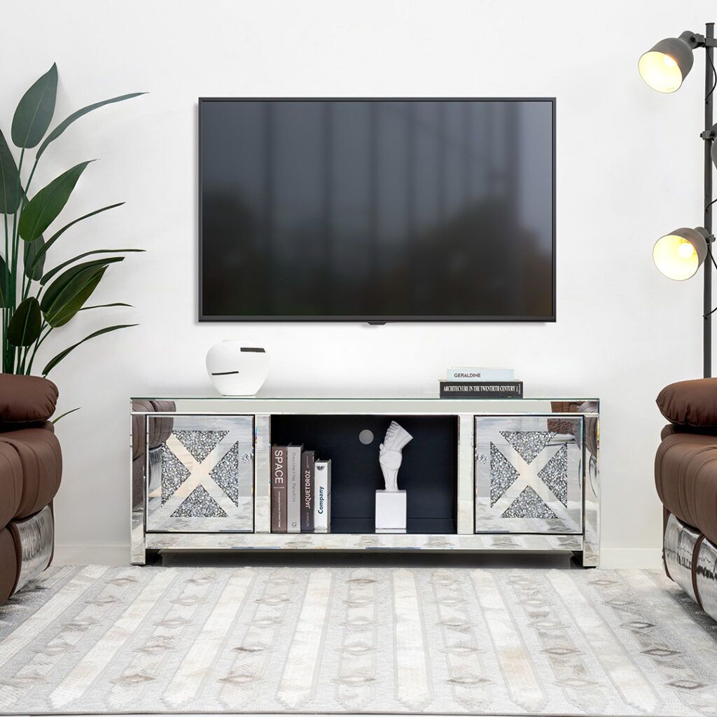 The mirrored surfaces of the Pier TV Unit bring an element of sophistication and visual intrigue to your entertainment area. Paired with a robust MDF framework, the unit ensures durability and stability, providing a stylish foundation for your television and media accessories.