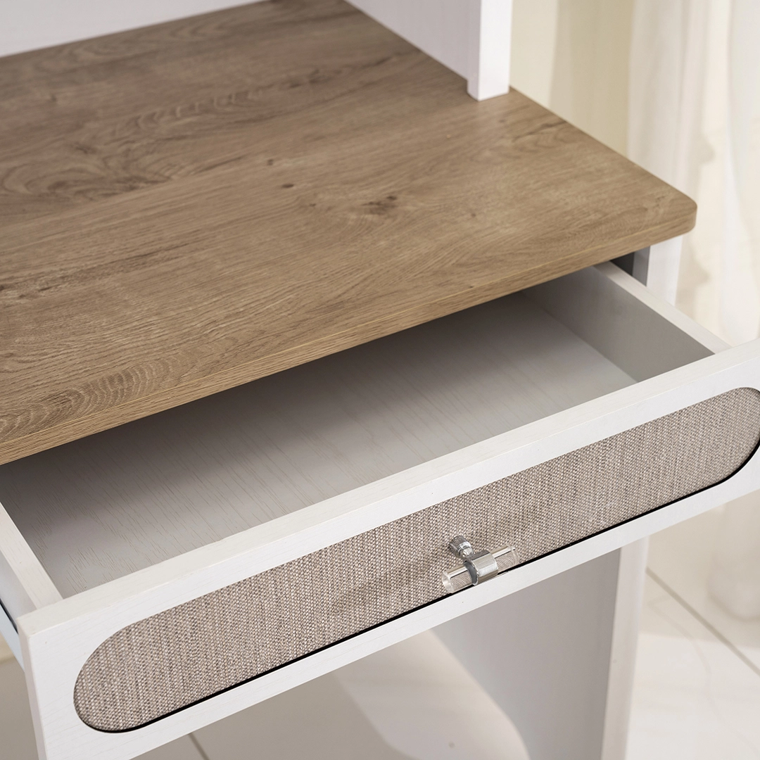 This study table combines modern simplicity with practical functionality. Its spacious work surface and sturdy construction make it ideal for studying, working, or organizing your essentials, fitting seamlessly into any home or office setting.
